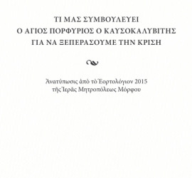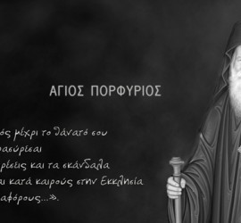 Ὁ Ἅγιος Πορφύριος ὁ Καυσοκαλυβίτης μᾶς συμβουλεύει πολὺ πνευματικὰ γιὰ τὴν πνευματική μας ζωὴ καὶ τὴν ἀντιμετώπιση τῶν προβλημάτων τῶν χριστιανῶν, ὅπως τὰ ζοῦμε στὴ δύσκολη καὶ πολὺ παραστρατημένη ἐποχή μας. Ὑπάρχει ἐλπίδα, ὅταν ἀκολουθήσουμε τὶς συμβουλὲς τοῦ Ἁγίου Πορφυρίου, νὰ μᾶς χαριτώσει ὁ Θεὸς νὰ ἀγαπήσουμε τὸν Χριστὸν καὶ νὰ μποῦμε στὴν ἄκτιστη Ἐκκλησία […]